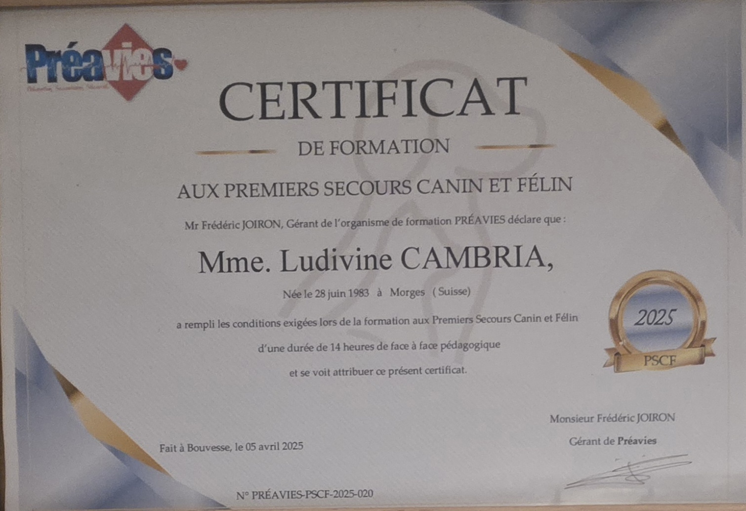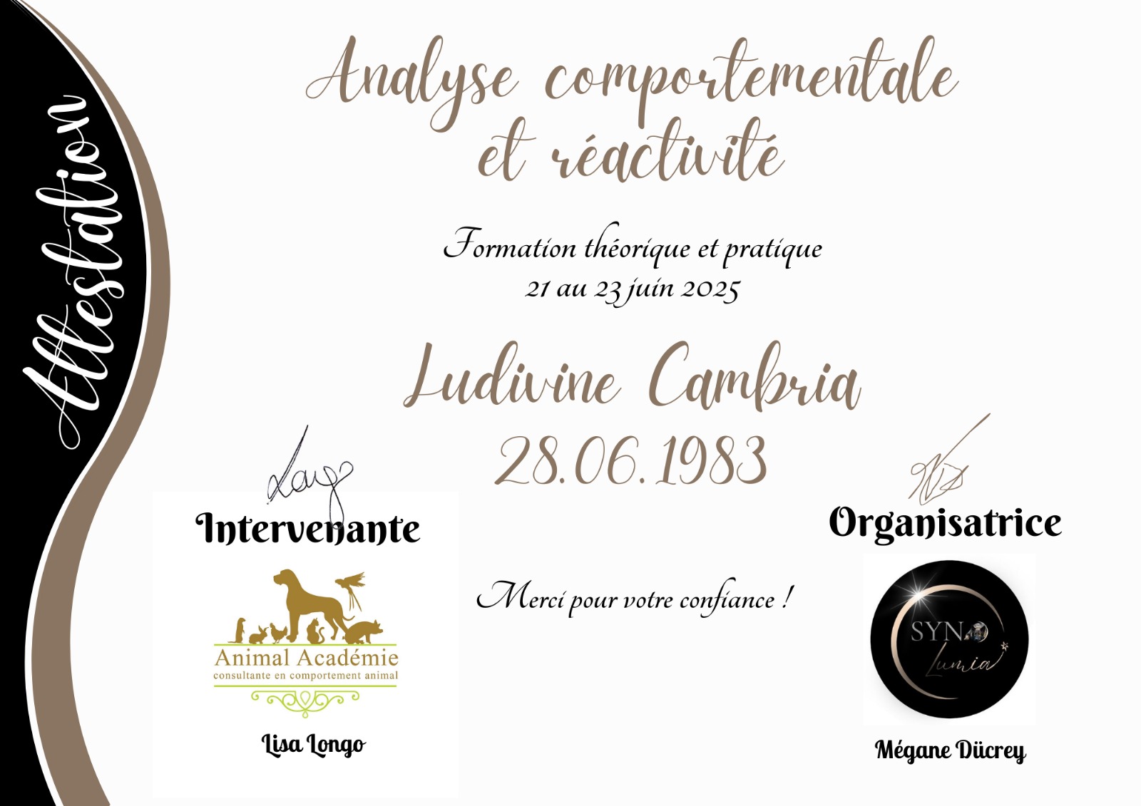 - 2021 – MEC Brevet de monitrice d’éducation canine -> FRC